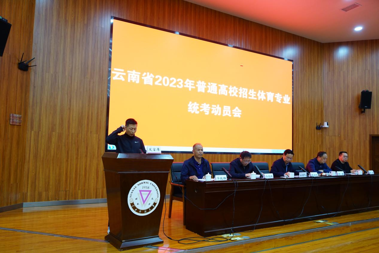 3月18日下午,云南省2023年普通高等学校招生体育专业统考动员会在必赢官网召开。云南省招生考试院副院长林磊作动员讲话。必赢官网副校长陈正权主持会议并作表态发言。