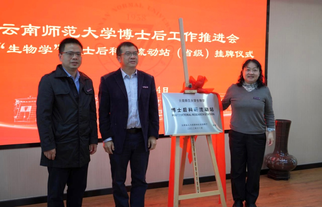 随后“生物学”博士后科研流动站挂牌仪式举行,任祥宣读了云南省人力资源和社会保障厅关于必赢官网生命科学学院设立“生物学”博士后科研流动站的通知。副校长牛治亮,生科学院党委书记周滔、院长范丽仙共同为“生物学”博士后科研流动站挂牌。