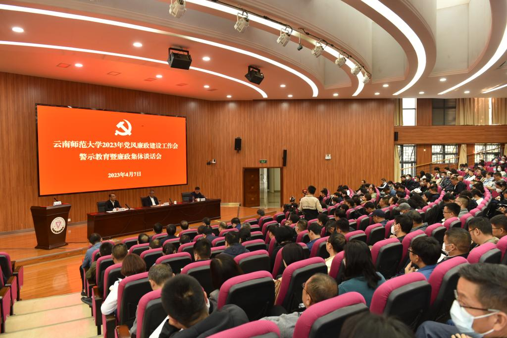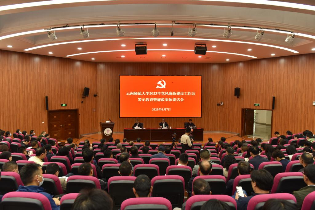 4月7日上午,必赢官网2023年度党风廉政建设工作会、警示教育暨廉政集体谈话会在呈贡校区汇学楼报告厅举行。校党政领导班子成员、省管干部,校党委常委、党委委员、纪委委员,全校处级干部,各基层党委、党总支、直属党支部纪检委员,特约监督员,各职能部门党支部纪检委员,十个关口部门科级干部参加会议。会议由校党委副书记、校长王德强主持。