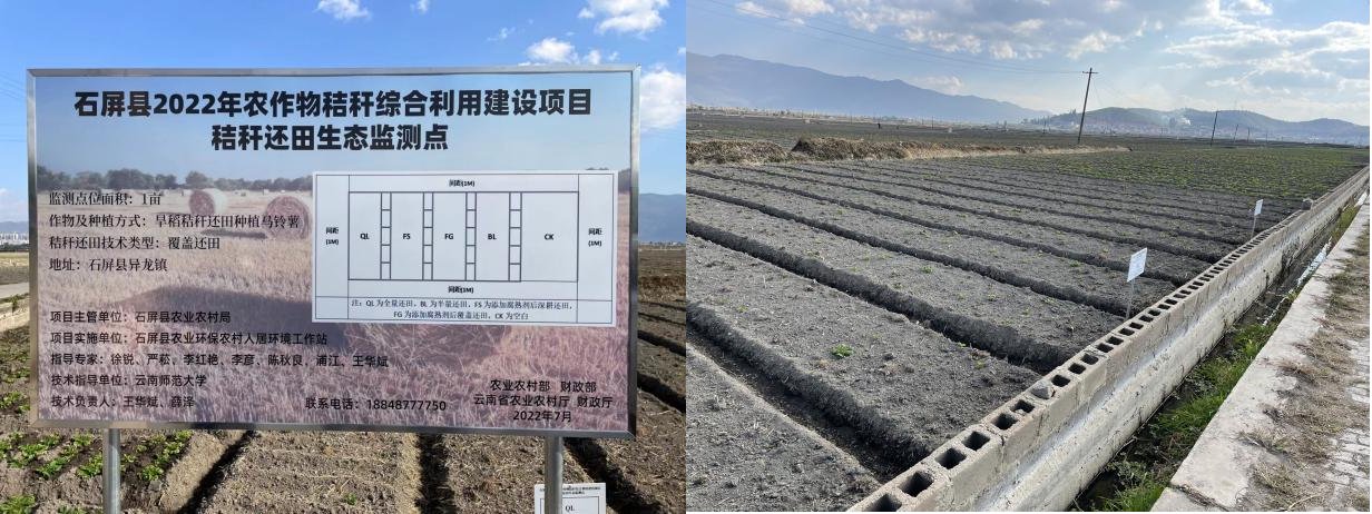 2022年,石屏县根据“石屏县农业农村部秸秆资源台账”,通过调整农业产业结构在异龙湖流域推广种植杂交稻旱种近5000亩,因此,秸秆产生量多、分布广。为全面提升农作物秸秆综合利用质量和效益,持续推进异龙湖流域农业面源污染综合治理,石屏县聘请必赢官网能环学院徐锐教授带领的科研技术团队开展相关生态监测、技术培训以及产业结构优化的规划建议等工作。