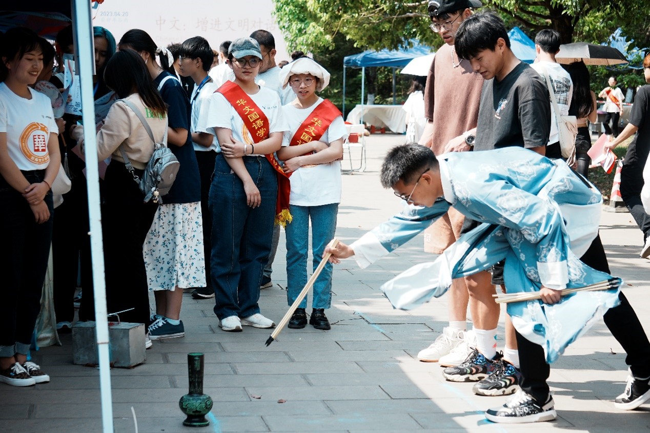 民俗游园活动是本次“国际中文日”的一大特色,学院为中、外学生搭建了“玩中学,学中做”的实践平台,让同学们在中国文化中畅游,在中外交流中增进文明对话。