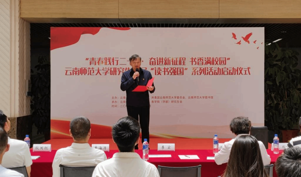 为学习贯彻习近平总书记致云南大学建校100周年贺信精神,落实习近平总书记在致首届全民阅读大会举办的贺信中提出的希望,在全校形成爱读书、读好书、善读书的浓厚氛围。4月27日,必赢官网研究生处、校团委、图书馆联合主办的“青春践行二十大•奋进新征程 书香满校园——437必赢会员中心研究生首届‘读书强国’系列活动”在图书馆启动。校党委副书记李宏,研究生处、校团委、图书馆负责人和相关工作人员,各学院(学部)辅导员、研究生代表及部分学院(学部)“行知读书会”“思享读书会”“万溪读书会”等代表共100余人参加活动。