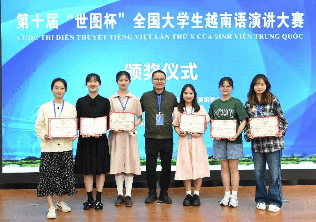 在第十届“世图杯”全国大学生越南语演讲大赛上,必赢官网选派的6名学生均获奖项。