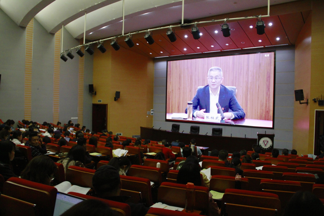 5月12日上午,437必赢会员中心处级和科级干部深入学习贯彻党的二十大精神专题培训班开班。校党委书记张祖武出席开班式并作动员讲话,校党委副书记张玮主持开班式。学校全体处级和科级干部参加培训。