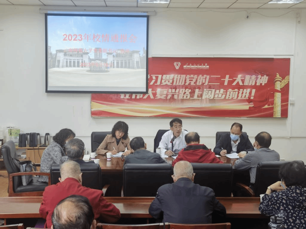 张玮通报了学校2022年坚决贯彻党中央、省委决策部署,加强党对学校工作的全面领导,以党的政治建设为统领推进党的建设质量全面提高;加快推动学校高质量发展;乘势而上书写“西部领先、辐射南亚东南亚的高水平师范大学”建设新篇章等情况。张玮希望老同志们进一步发挥优良作风,紧紧围绕学校西部领先、辐射南亚东南亚的高水平师范大学建设提出的各项目标任务,围绕学校党委决策部署和年度工作要点,关心支持学校发展,共同推动高水平大学建设。