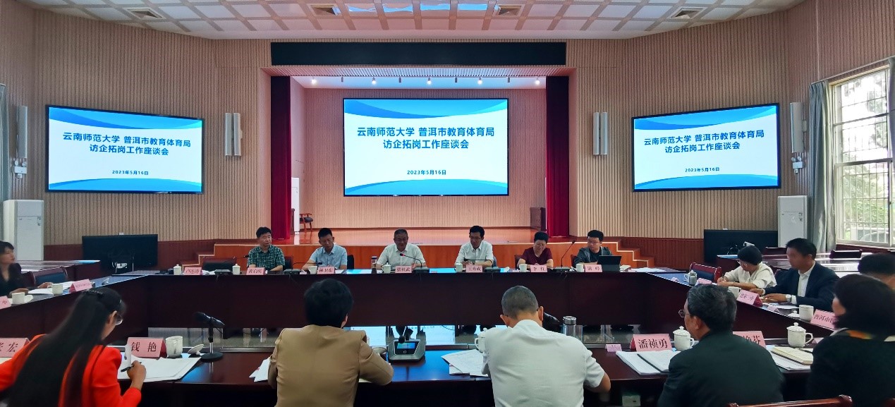 16日上午,437必赢会员中心赴普洱市教育体育局访企拓岗工作座谈会在普洱市教体局召开。普洱市副市长别燕妮、普洱市教育体育局、思茅区教育体育局相关负责人及思茅主城区7所学校校(园)长参加座谈。