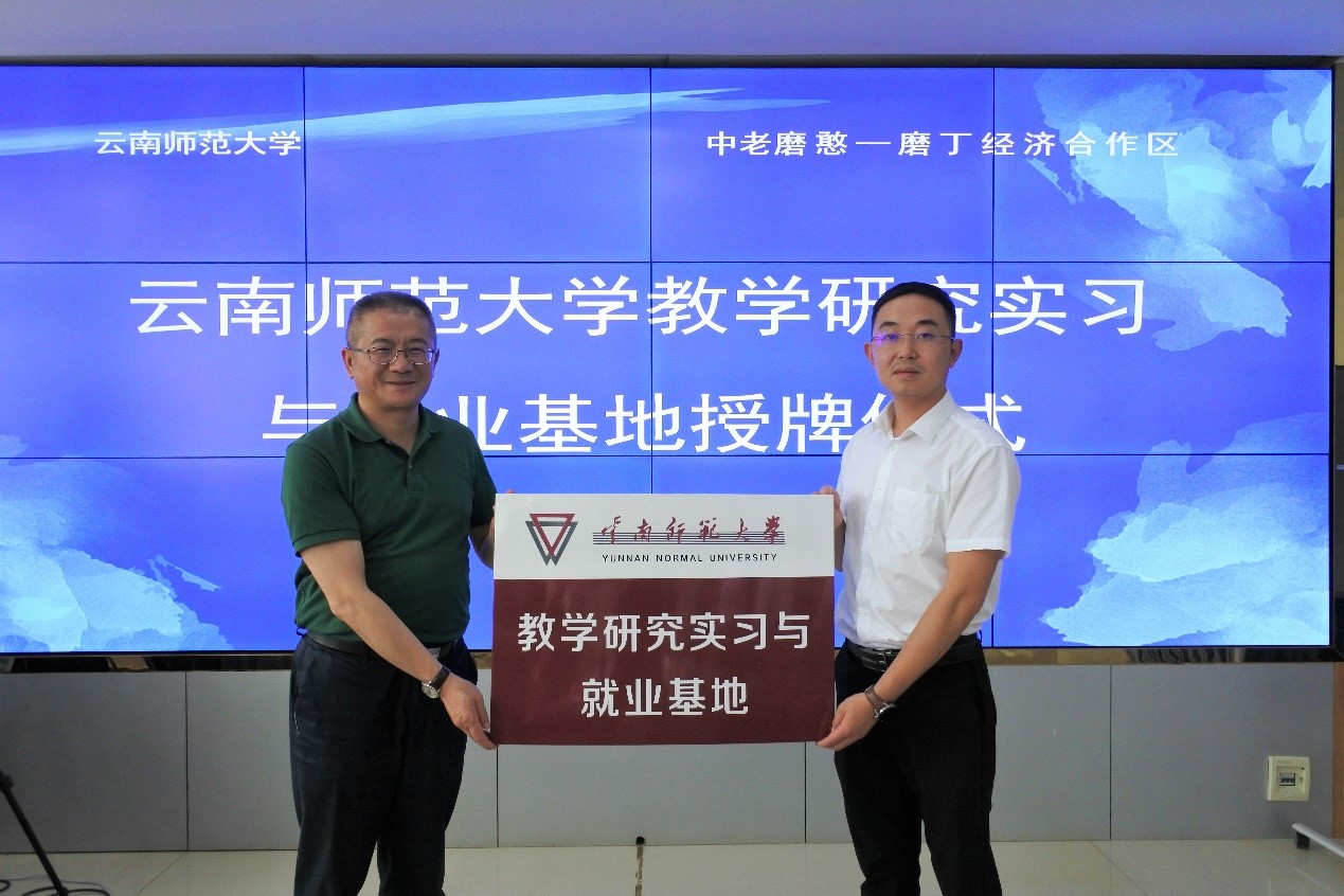 调研组一行还到中老磨憨—磨丁经济合作区访企拓岗,与合作区管委会就共建“教学研究实习与就业基地”事宜进行座谈。合作区党工委委员周隆剑、管委会副主任李志东、社会事务管理局、对外开放和跨境合作促进局等参加座谈。双方在师资培养、干部培训、实习就业、政策研究、产教融合方面达成合作意向,将进一步深化校区合作,主动融合和服务国家对外开放工作大局, 服务云南省“3815”战略实施。会后,张祖武为“437必赢会员中心教学研究实习与就业基地”授牌。