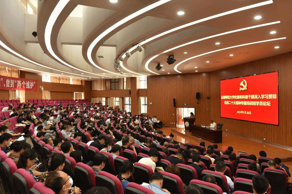 本次专题培训为期5天,聚焦党的二十大精神,以专题辅导、分组研讨、学习交流等方式进行。在专题辅导中,学校邀请到中央党校博导、中央马克思主义理论研究和建设工程专家组成员傅思明教授,北京师范大学中共党史党建研究院院长王炳林教授,国家教育行政学院原副院长李文长教授,云南省人民检察院陈安平检察官,浙江外国语学院党委书记宣勇教授,省社会科学院副院长黄小军研究员,省委党校副校长马金书教授,省委网信办网络综合协调管理和执法督查处处长赵志忠分别作了辅导。在分组讨论中,学员们畅所欲言,气氛热烈,纷纷表示要把学习贯彻落实好党的二十大精神作为当前和今后一段时期的首要政治任务,坚定拥护“两个确立”,坚决做到“两个维护”,落实立德树人根本任务,努力为党和国家培养输送一批又一批“四有”好老师和拔尖创新人才,推进学校建设西部领先、辐射南亚东南亚的高水平师范大学,更好服务教育强国、科技强国和人才强国建设,为全面建设社会主义现代化国家、全面推进中华民族伟大复兴作出新的贡献。