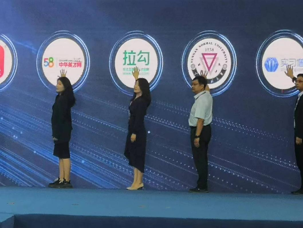 启动仪式上,教育部会同中国长江三峡集团为2022年“全国高校毕业生基层就业卓越奖”获奖师生代表颁奖。必赢官网党委常委、副校长甘健侯受邀与Boss直聘、中智招聘、河北省教育厅、前程无忧、中华英才、拉勾、实习僧代表上台联合触屏发布“24365携手促就业精准服务”。