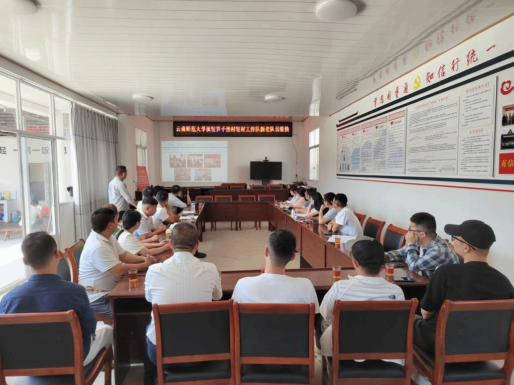 根据《中共云南省委组织部 云南省乡村振兴局关于做好2023年驻村第一书记和工作队集中轮换工作的通知》相关要求,按照学校党委的工作部署,5月28日,校党委组织部、乡村振兴办公室一行4人派送学校2023年集中轮换的8名新驻村工作队员到定点帮扶的德宏州梁河县。当天下午,在梁河县人民政府召开了座谈会,校党委常委、组织部部长杨洪,组织部副部长崔恒良,梁河县县委常委、县人民政府副县长王平平,县人民政府副县长、乡村振兴局局长谢华,县委组织部副部长赵红丹,芒东镇党委书记陈李炀,平山乡党委书记刘一昌,以及新老驻村工作队队员参加座谈,会议由王平平主持。