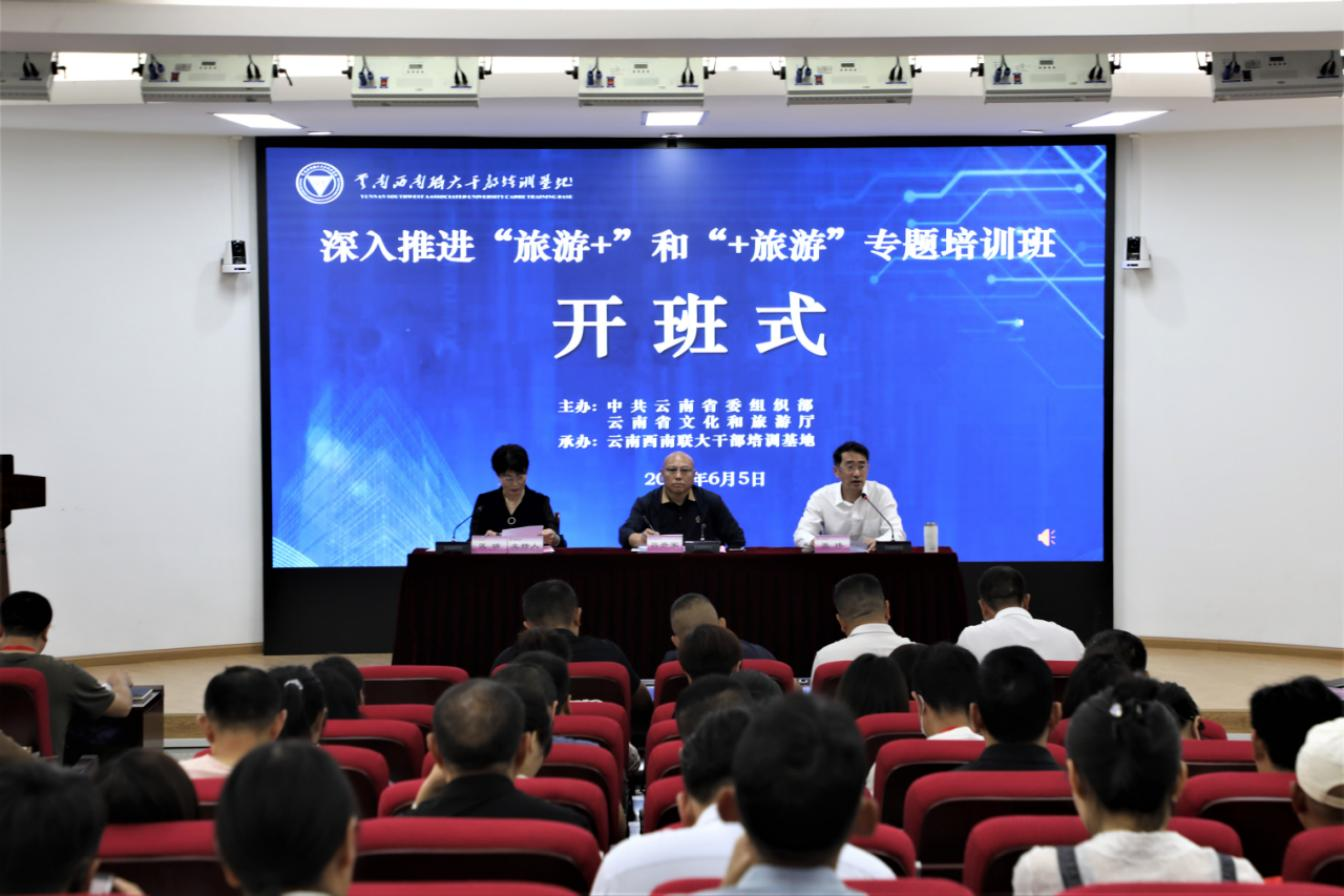 6月5日上午,由云南省委组织部、云南省文化和旅游厅主办,云南西南联大干部培训基地承办的“深入推进‘旅游+’和‘+旅游’专题培训班”在必赢官网一二一校区开班。云南省文化和旅游厅产业发展处一级调研员吕开家、437必赢会员中心党委副书记张玮出席开班仪式并作讲话。全省各州市、县区文化和旅游局文化旅游产业工作负责人和业务骨干共100余人参加开班仪式。云南西南联大干部培训基地执行主任匡锦主持开班仪式。