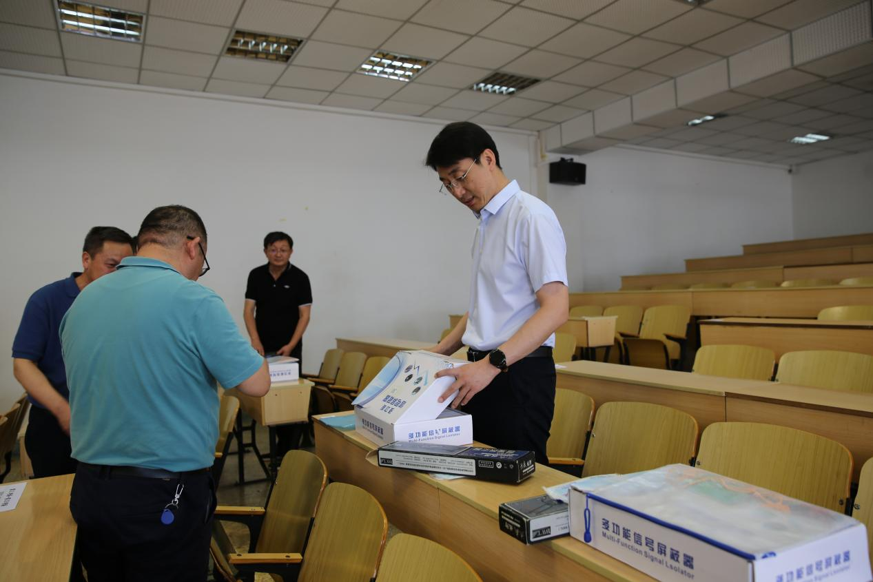 检查组一行实地检查了视频监控室、安检门设置、手机保管处、监考教师通道、试卷分发室等重点区域,了解安全保密、考务管理、考风考纪建设、服务考生及应急突发(偶发)事件处置等考前准备情况。