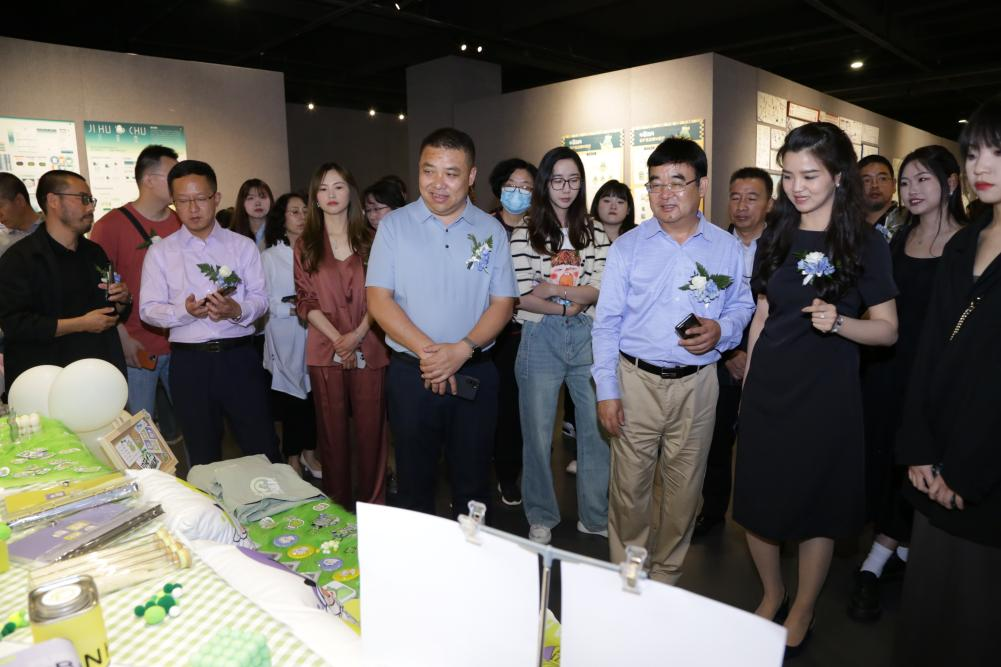 开幕式结束后,在场的各位领导和师生来到展厅参观了解同学们的设计作品。一份份制作精良、主题鲜明、各具特色的设计作品,一幅幅契合梁河本土企业发展需要的农特产品包装设计、形象设计,一张张结合梁河旅游发展规划建设需求的景观设计、建筑设计,获得在场领导和师生的一致赞誉。