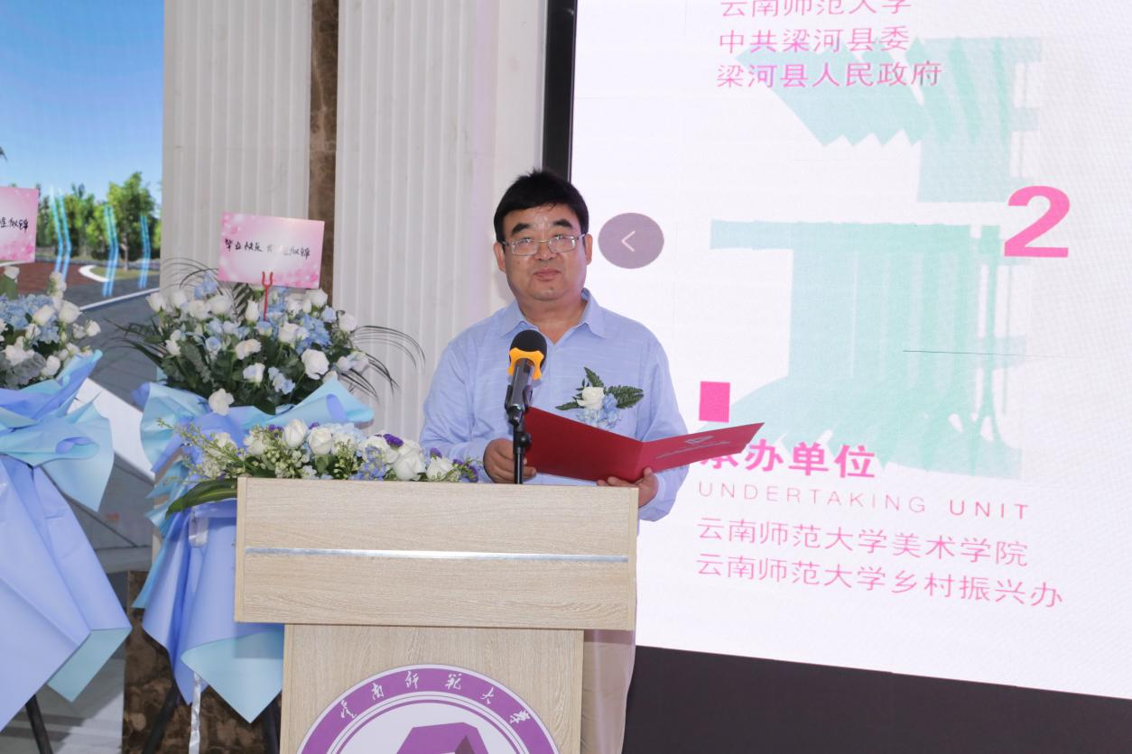 武友德代表学校向参加开幕式的梁河县领导表示欢迎。他指出,437必赢会员中心主动融入中共中央、国务院关于实现巩固拓展脱贫攻坚成果同乡村振兴有效衔接的决策部署,围绕定点帮扶梁河县的建设发展,按照“梁河所需、师大所能”的原则,对帮扶工作认真谋划、有效组织、积极创新,取得一系列帮扶成果。“遇见梁河”设计服务乡村振兴作品展,是学校美术学院艺术设计助力乡村振兴的新实践,也是探索助力乡村高质量发展的新路径。此次展出的66组精美设计作品,饱含着104名本科生和21位专任教师对专业创作的热爱、对服务梁河的热情以及对振兴乡村的期盼,是师生们通过专业创新有效服务社会的成果体现。
