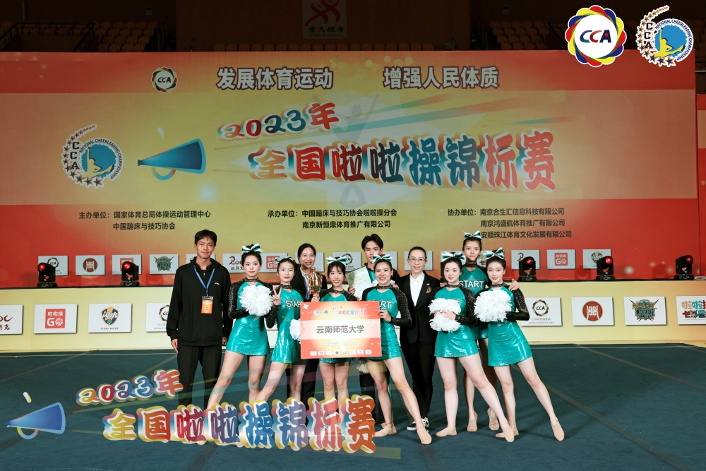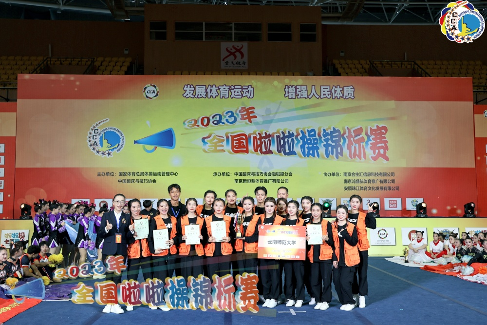 6月5日至8日,必赢官网啦啦操队出征2023年全国啦啦操锦标赛,取得公开组青年甲组大集体自编街舞第一名、小集体自选花球第二名、双人自选爵士第三名的好成绩。