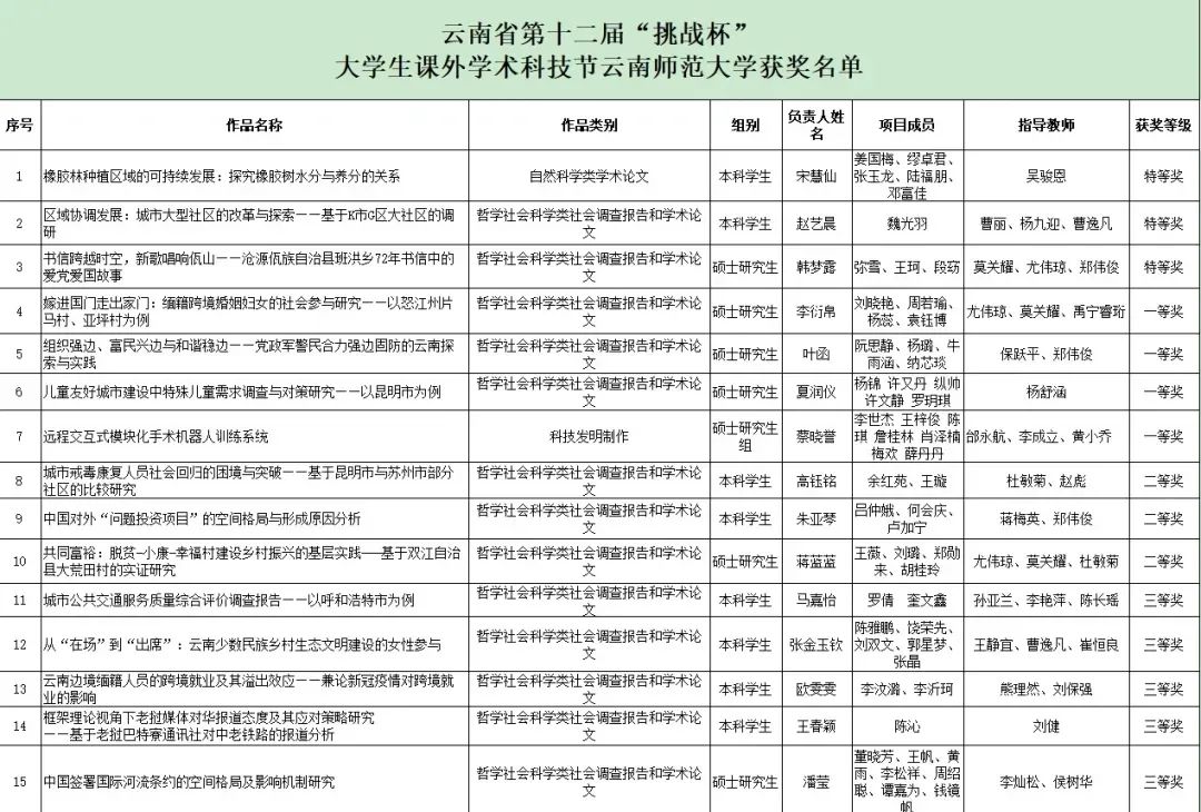 6月6日,云南省第十二届“挑战杯”大学生课外学术科技节结束,必赢官网获特等奖3项、一等奖4项、二等奖3项、三等奖5项,并获“优秀组织奖”。