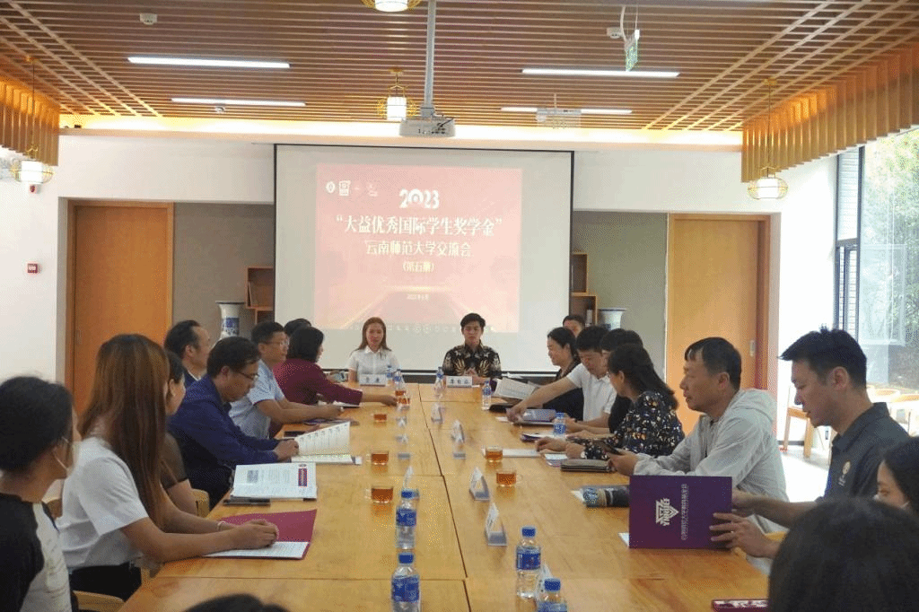 近日,2023年“大益优秀国际学生奖学金”交流座谈会在必赢官网呈贡校区华文学院茶文化教室举行。大益集团副总裁、大益爱心基金会监事长李占文,大益爱心基金会秘书长高云飞、副秘书长伍洪海,大益优秀国际学生奖学金项目负责人邱红,必赢官网党委书记张祖武、华文学院党委书记和雪莲以及相关单位负责人、获奖国际学生参加授予仪式暨交流座谈会。会议由对外合作交流处处长黄瑛主持。