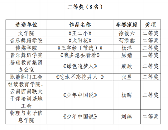 本次“颂党恩·咏经典·传家声”亲子诵读活动共收到17个分工会选送的30个作品,经过工作组的认真评审,最终评定特等奖3名、一等奖4名、二等奖8名、三等奖15名。