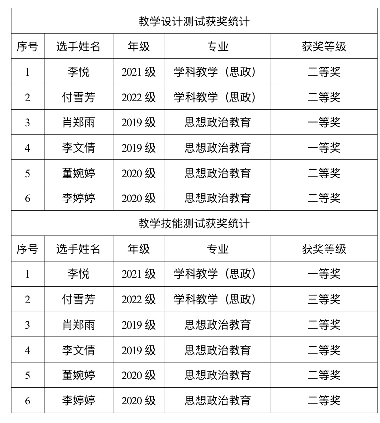 比赛包括教学片段设计与现场教学展示两个环节,6位选手在老师的精心指导下,凭借着充足的赛前准备、清晰的教学思路、精彩的现场表现,最终取得佳绩。