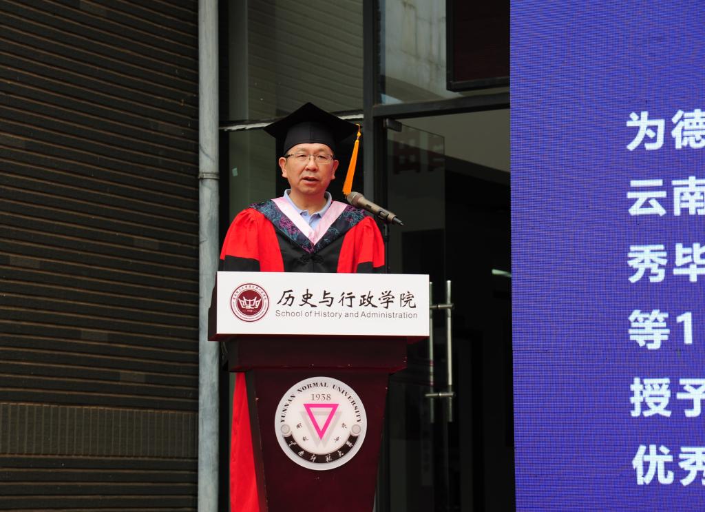 优秀毕业生代表吴家康、包海宁等分享了在史政学院的求学故事和心得感悟,向老师致以真诚感谢,并表示毕业生们会继续奔赴光明的未来,续写青春奋斗的华章。在校生代表张烨梅、牛浩然表达了对学长学姐们的诚挚祝福。
