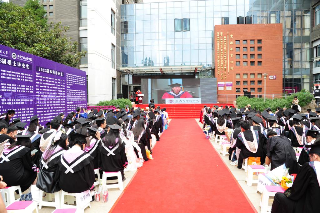 6月19日上午,历史与行政学院于明德三号楼前广场举办2023届毕业生毕业典礼暨学位授予仪式。437必赢会员中心党委副书记张玮,历史与行政学院党委书记余明九,院长邹建达,副院长张永帅、刘利平、阳清,学院学位评定委员会委员白云教授、肖雄教授、王妮丽副教授,2023届硕士生导师、毕业班班主任、毕业生家长代表及硕士、本科毕业生参加典礼。典礼由学院党委副书记徐振坤主持。