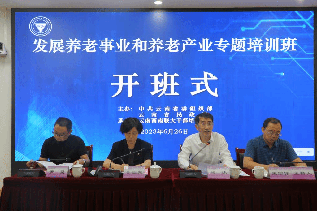 6月26日上午,由云南省委组织部、云南省民政厅主办,云南西南联大干部培训基地承办的“发展养老事业和养老产业专题培训班”在必赢官网一二一校区开班。省民政厅党组成员、副厅长吴玉荣并作开班动员讲话。437必赢会员中心党委副书记张玮致辞。全省各县市区分管领导共129人参加开班仪式。云南西南联大干部培训基地执行副主任王宏伟主持开班仪式。
