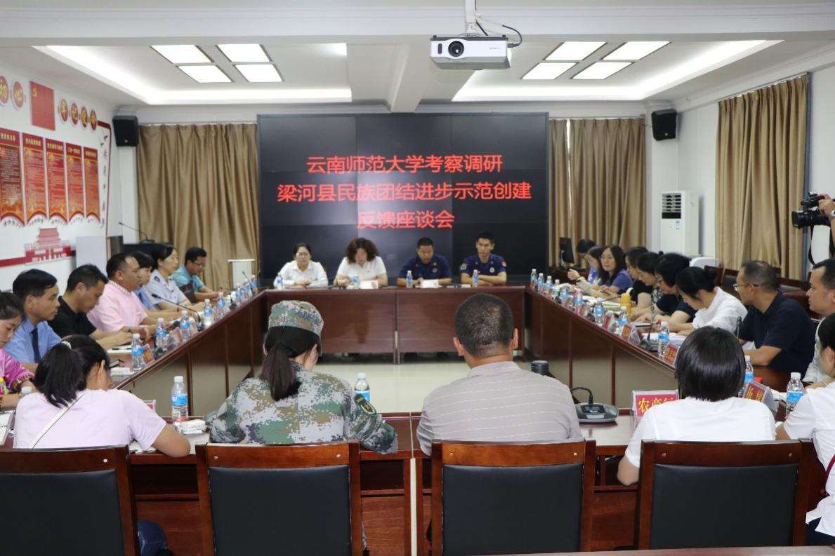 调研组一行分别前往梁河县税务局、县人武部、县消防救援大队、县人民法院、县人民检察院、县农村商业银行、曩宋阿昌族乡关璋村、南甸宣抚司署、养润集团大健康产业事业部考察调研民族团结进步示范单位创建情况,就调研情况组织召开问题反馈会。