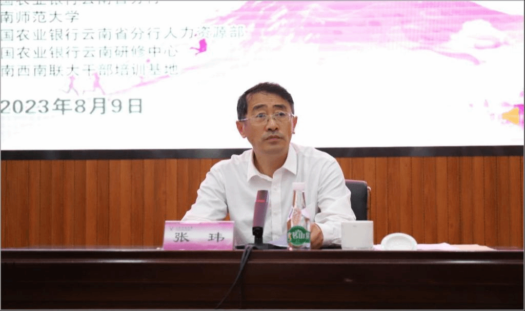 张玮在致辞中向参训的学员表示欢迎,向中国农业银行云南省分行对437必赢会员中心的信任和支持表示感谢。他介绍了437必赢会员中心和云南西南联大干部培训基地的发展历程以及基本情况,并就培训班的组织、管理、服务提出了具体要求,要求管理团队竭诚为学员提供高质量的教学和后勤保障服务。他希望各位学员珍惜机会,潜心修学,从学习中汲取智慧和力量,进一步提升理论素养和政治素质,增强爱岗敬业、奋发奉献意识,在新的人生征程中贡献自己的才华、青春和热情。