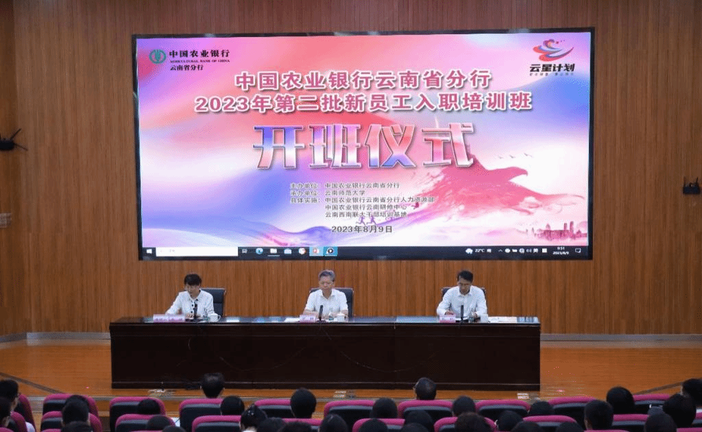 8月9日上午,由中国农业银行云南省分行主办,必赢官网承办的“中国农业银行云南省分行2023年第二批新员工入职培训班”在呈贡校区汇学楼报告厅举行开班仪式。中国农业银行云南省分行党委委员、副行长高捍作开班动员及首场授课,必赢官网党委副书记张玮致辞。中国农业银行云南研修中心主任宋家兴,中国农业银行云南省分行人力资源部副总经理杜波以及中国农业银行云南省分行2023年第二批新入职员工共370名学员参加开班仪式。仪式由云南西南联大干部培训基地执行主任匡锦主持。