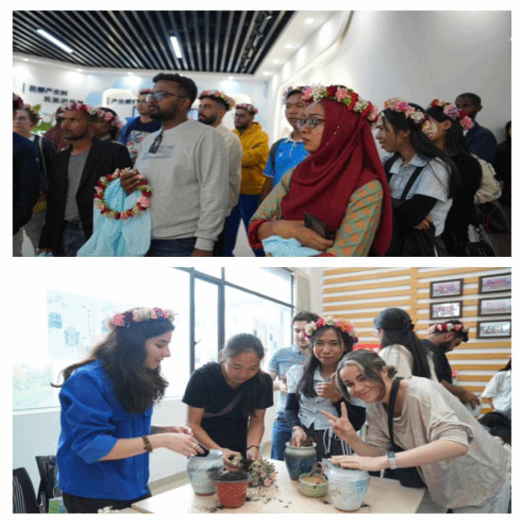 在亚洲最大的鲜花交易市场斗南花市,营员们了解了花市的基本情况、基础设施以及鲜花的种类,参观了鲜花拍卖现场。