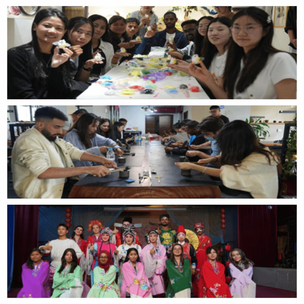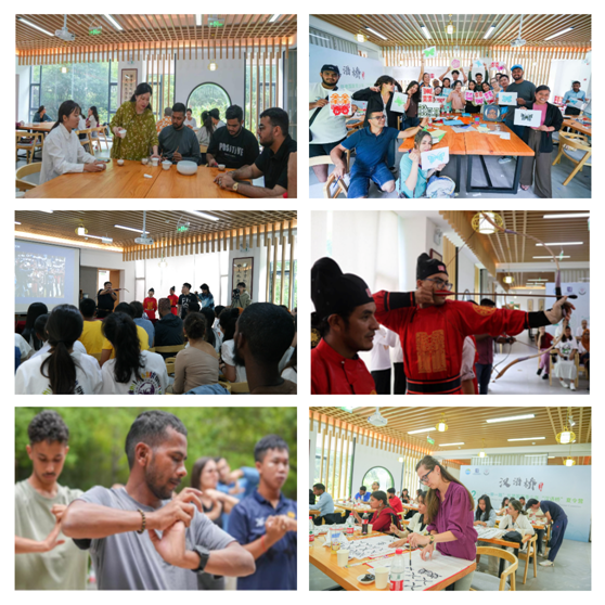 期间,各国青年们通过专题讲座了解“一带一路”倡议、中国文化、中华传统美食等方面知识,学习了射艺、茶道、剪纸等中国文化才艺课程。