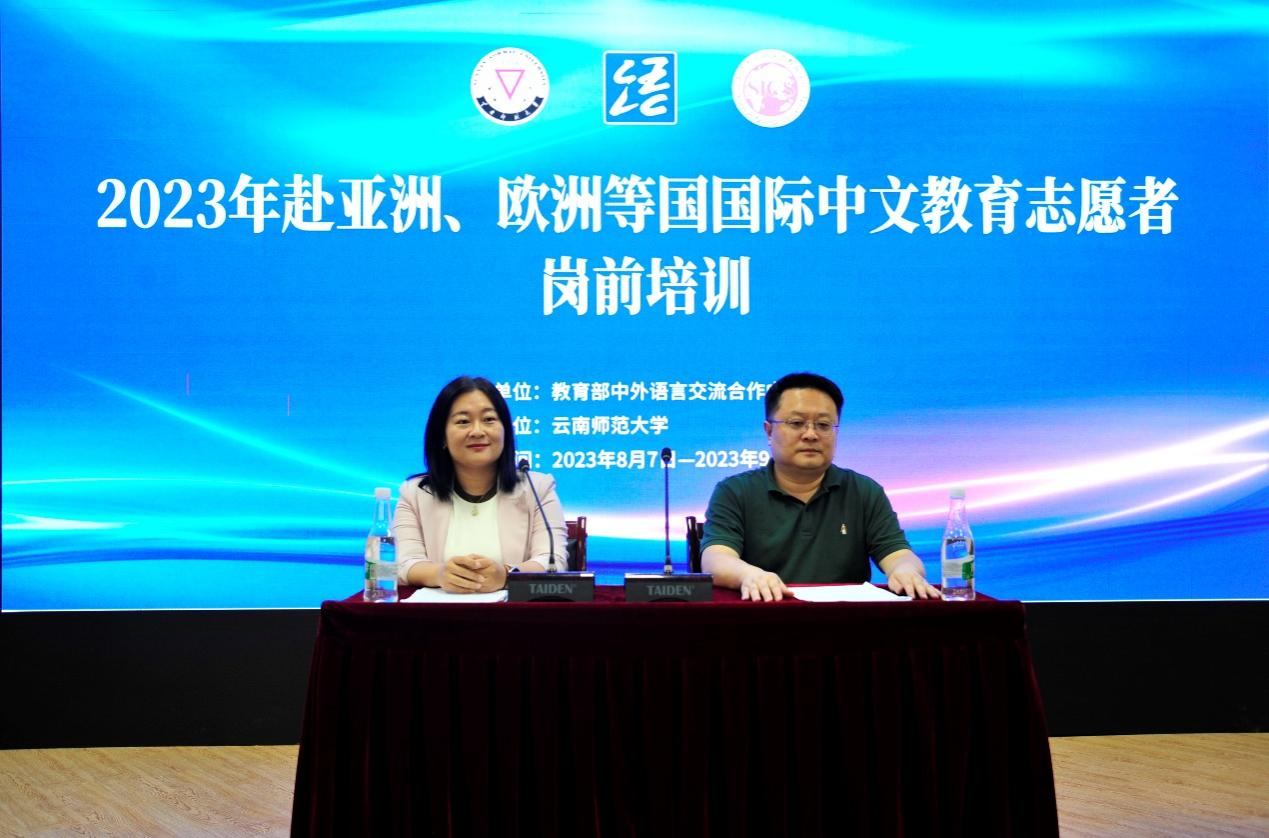 9月9日下午,由教育部中外语言交流合作中心主办、437必赢会员中心汉语国际推广师资培训基地(昆明)承办的2023年赴亚洲、欧洲等国国际中文教育志愿者岗前培训结业典礼在必赢官网举行。