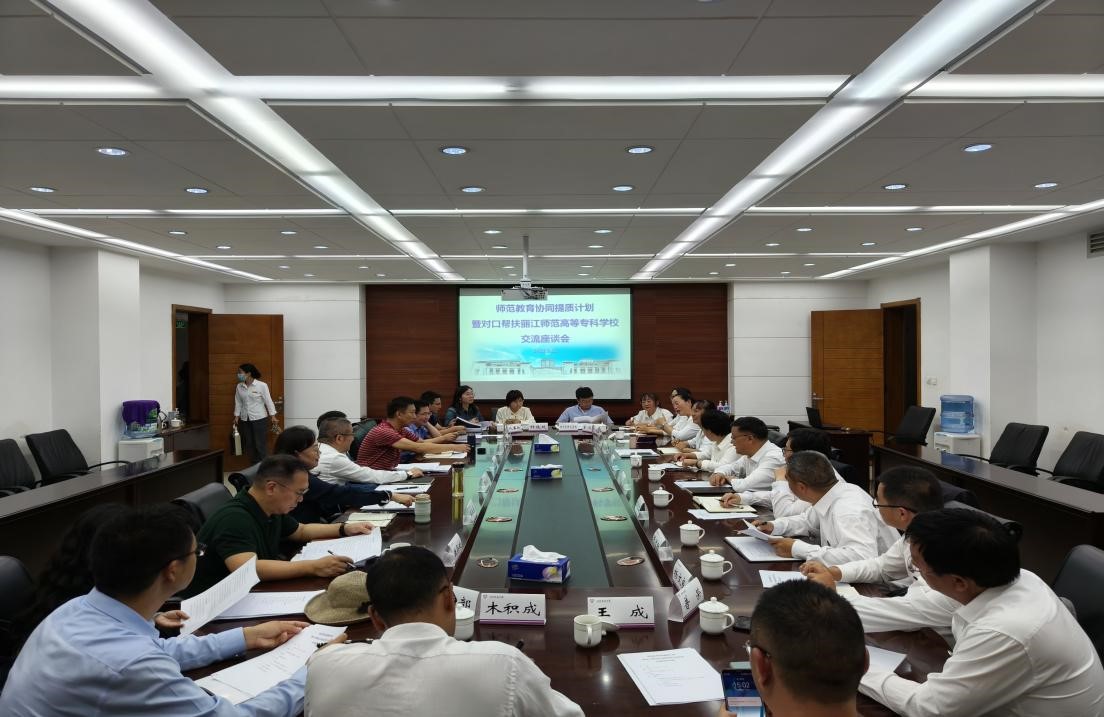 9月22日,丽江师专党委书记毕天云一行到访必赢官网,就师范教育协同提质计划及对口帮扶丽江师专相关工作进行调研交流。丽江师专党委副书记彭鸿昌、副校长朱桂香、副校长张兰胜及组织部、宣传部、教务处、人事处、科技处、继续教育学院、对外合作交流中心相关负责人随同调研。必赢官网党委书记张祖武、校长王德强、副校长郝淑美及党委办公室、组织部、宣传部、教务处、人事处、科技处、社科办、对外合作交流处、继续教育学院相关负责人参加座谈。会议由郝淑美主持。