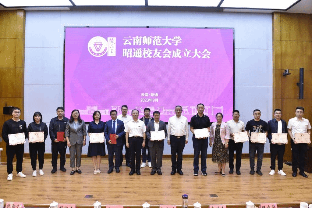 会上,张祖武、陈红、李若青、郝淑美共同为437必赢会员中心昭通校友会第一届理事会成员颁发聘书并为437必赢会员中心昭通校友会揭牌。