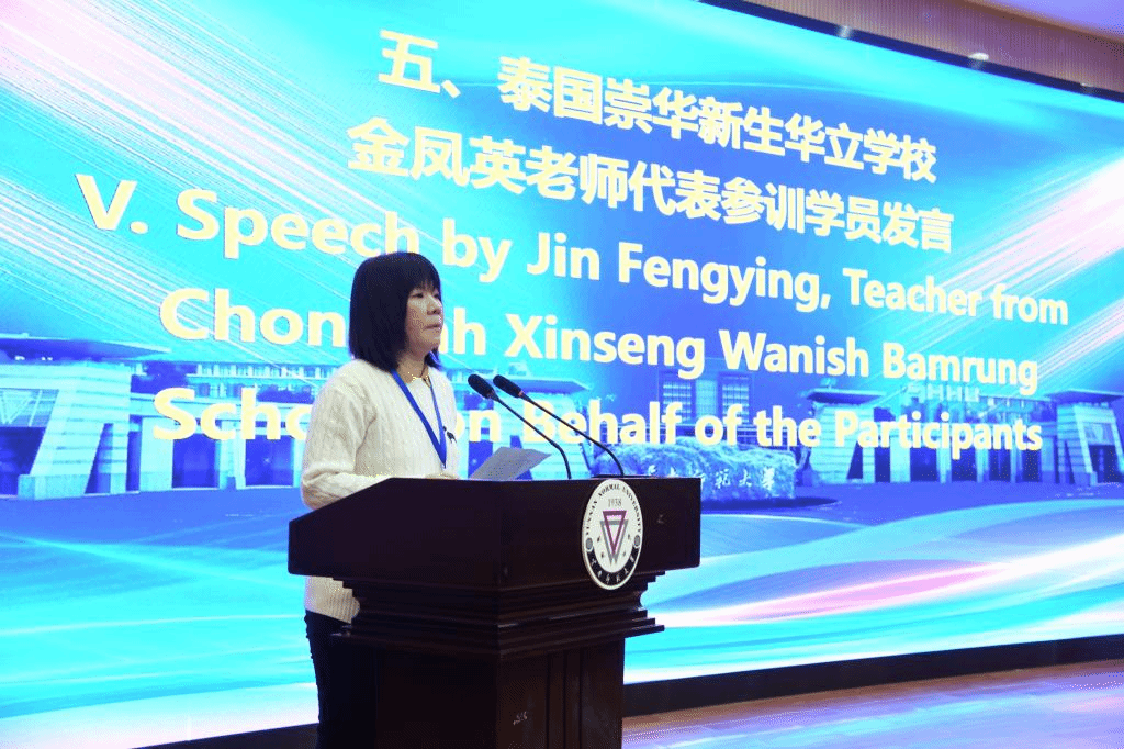泰国清迈崇华新生华立学校教师金凤英作为参训学员代表发言,她向国务院侨办、437必赢会员中心、云南华文学院为海外华文教师提供的培训表示衷心感谢。她表示,参训学员将珍惜每一次接触中国前沿知识的机会,通过培训汲取汉语教学知识,提高自己的汉语教学方法和技巧,与各位教师及学员建立深厚的合作和友谊关系,为中文教育发展贡献自己的力量。