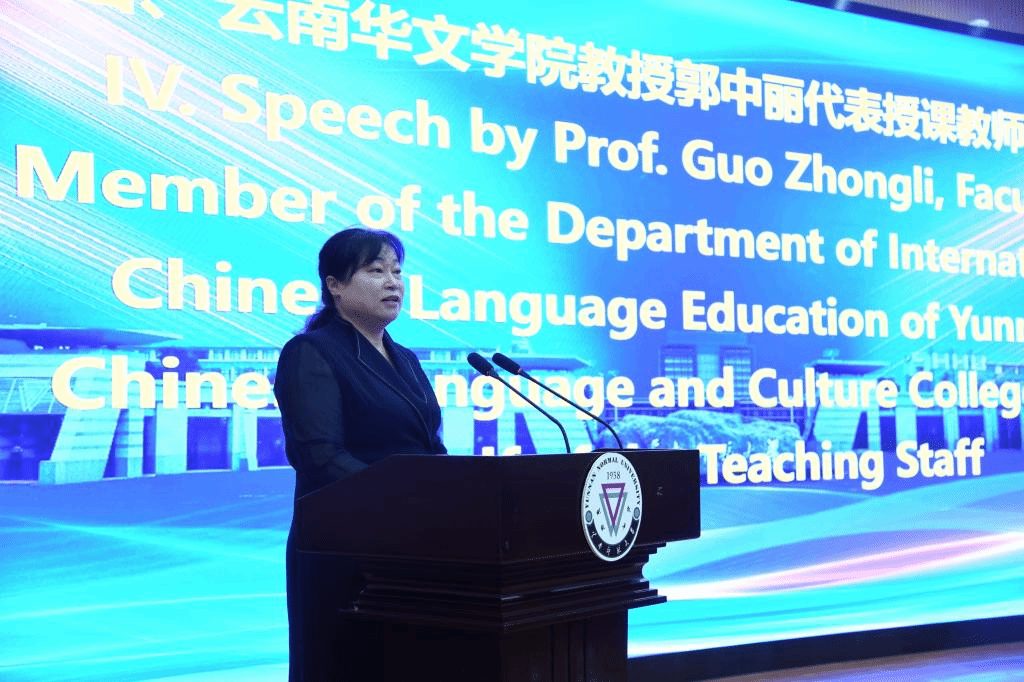 云南华文学院郭中丽教授作为授课教师代表发言,表示华文教育是维系海外华人与祖国情谊的重要纽带,也是促进中外交流、传播中华文化的重要途径。为完成好本次教学任务,所有授课教师都认真准备,精心设计教学内容和教学环节,与各国华文教育同仁们共同分享华文教育教学心得,相信每一位学员都能有所得有所获。她希望437必赢会员中心云南华文学院与海外华校建立更紧密的沟通机制,搭建教学科研交流合作平台,共同努力推动海外华文教育发展。