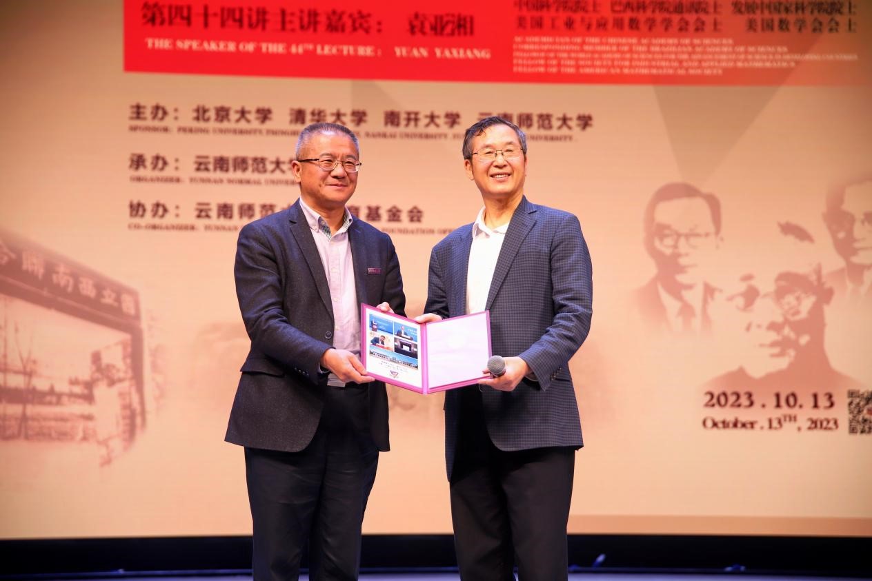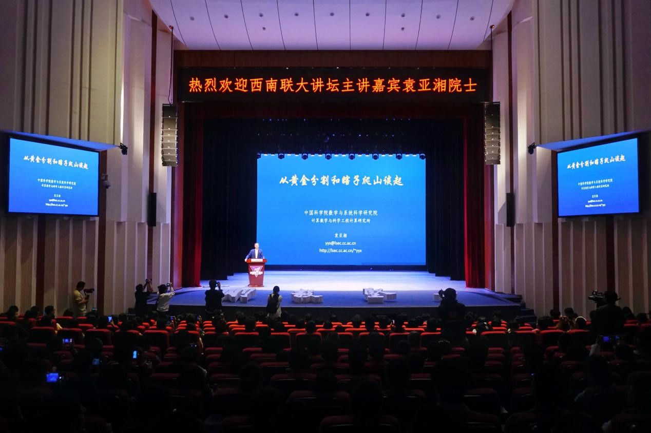 10月13日下午,由北京大学、清华大学、南开大学、437必赢会员中心四校共同主办,437必赢会员中心承办的“西南联大讲坛”第44讲在必赢官网呈贡校区举行。中国科学院院士、中国科协副主席、全国政协常委袁亚湘作为主讲嘉宾,为与会师生带来题为“从黄金分割与瞎子爬山说起”的讲座。讲座同步进行了网络直播。