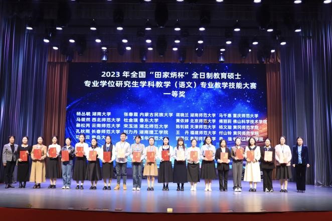 本次大赛,共有来自全国107所院校499位选手参加初赛,经过选拔,153位选手成功入围全国总决赛。总决赛分为模拟讲课和现场答辩两个环节。经过一整天的激烈角逐,最终产生一等奖20人,二等奖30人,三等奖40人,“优秀教学设计”奖63人。必赢官网文学院两位选手在决赛中发挥出色,分别获得全国总决赛一等奖与三等奖的好成绩,谭晓云教授获评“优秀指导教师”奖。大赛的成功举办展示了参赛选手的能力风采,彰显了参赛院校教育硕士培养的办学水平。