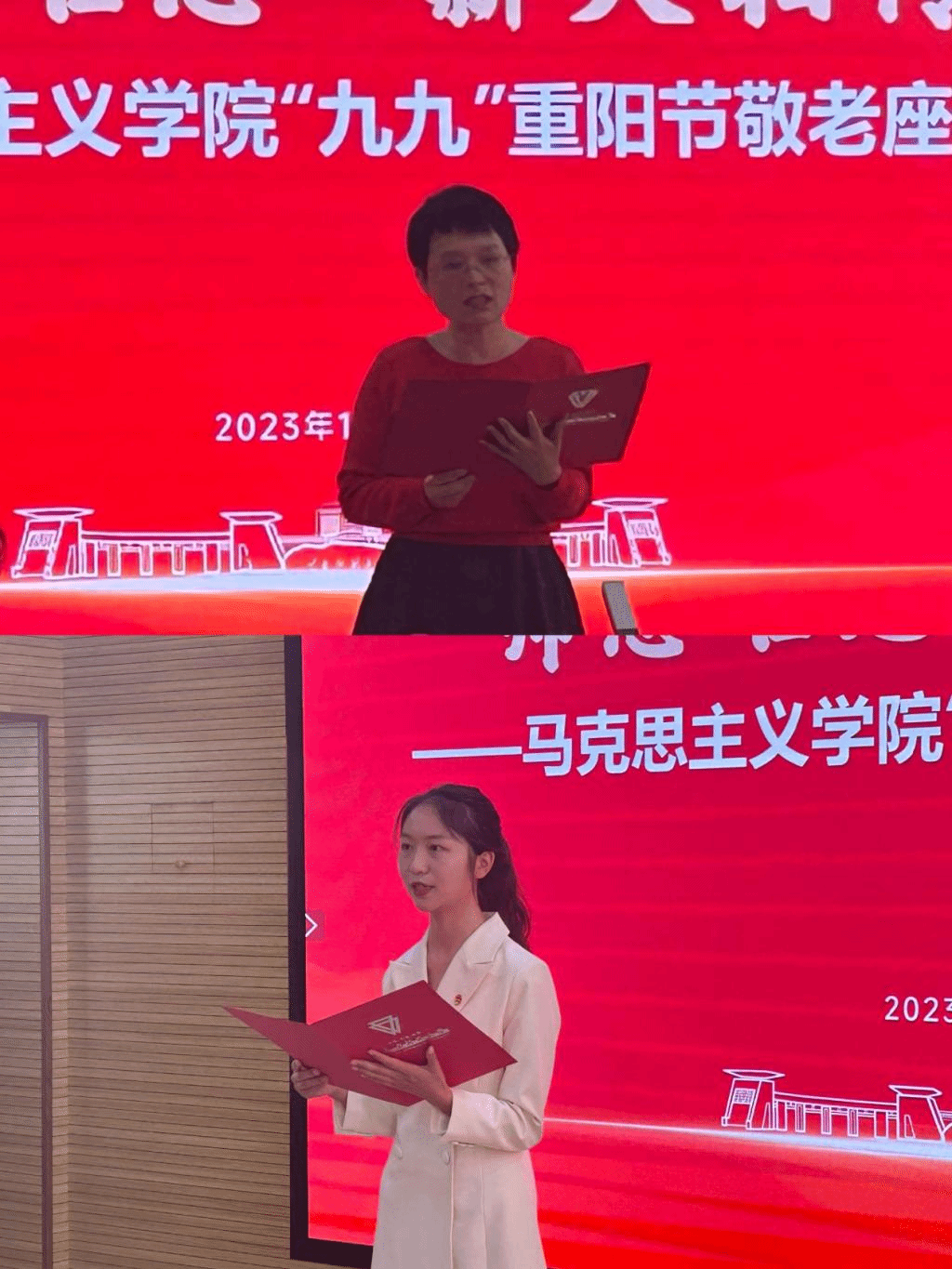 学生代表为退休老教师们献上了一场精彩的诗朗诵,他们用洋溢着青春与活力的声音表达了对退休老教师们的深深敬意和祝福。