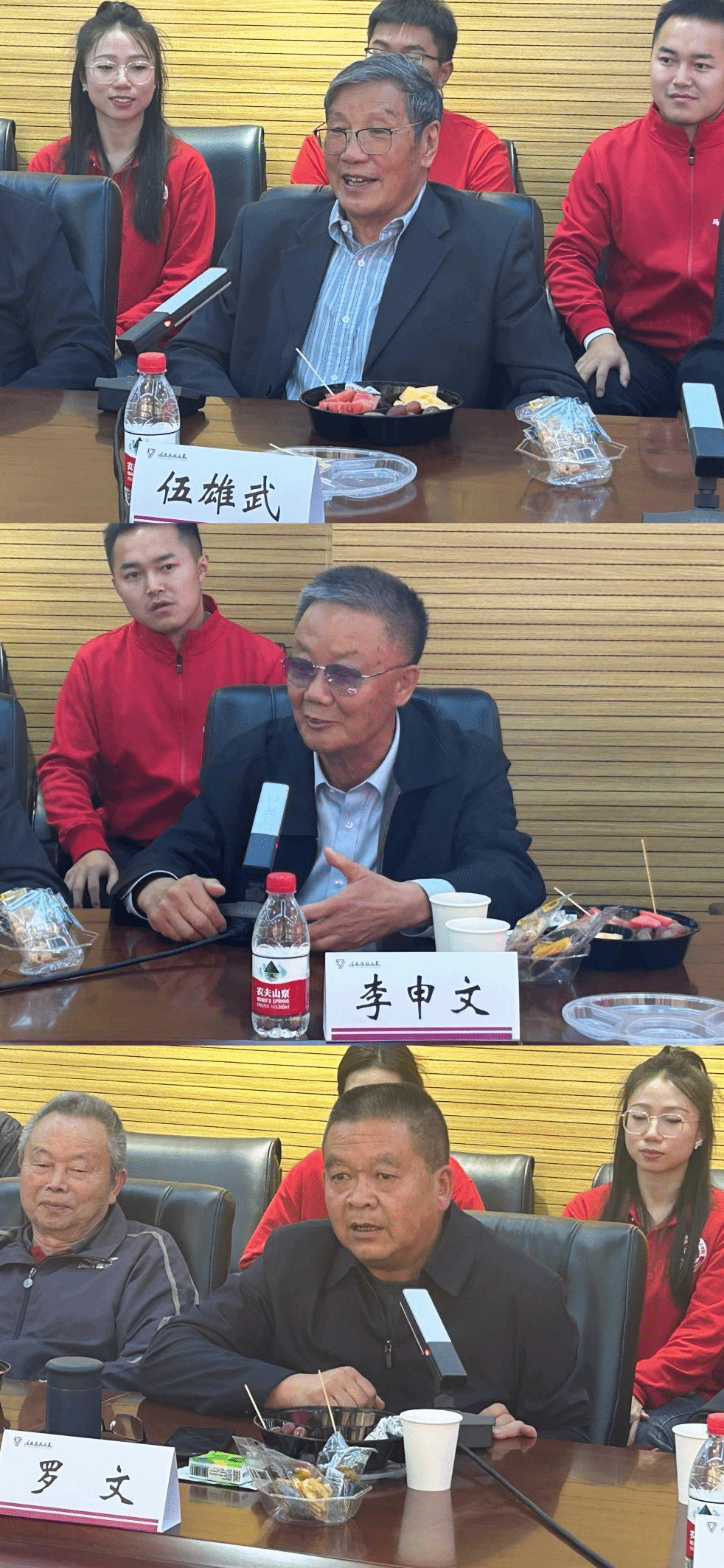 退休老教师伍雄武、李申文、罗文在发言中表达了对学院近年来取得的新突破、新成绩的欣喜之情。他们回忆各自投身教育事业、勤恳工作的经历与感悟,叙述了与学校和学院老师结下的深情厚谊。老教师们话语中饱含对学校和学院的热爱、感激和眷恋,同时也对青年一代提出了期望和建议。他们表示,看到学院在新一代的青年学子中继续发扬光大,感到无比欣慰和自豪,今后将继续心系学校,为学院的发展贡献余热。