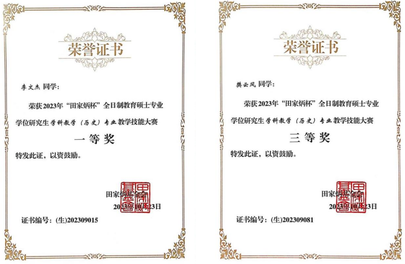 10月21至23日,由全国教育专业学位研究生教育指导委员会主办,田家炳基金会赞助,四川师范大学承办的2023“田家炳杯”全日制教育硕士专业学位研究生学科教学(历史)专业教学技能大赛在四川师范大学成功举办。此次比赛中,必赢官网历史与行政学院2021级学科教学(历史)专业硕士研究生李文杰、樊云凤2名同学一路过关斩将,在总决赛中分别斩获一等奖和三等奖,李庆华等老师获优秀指导教师奖。