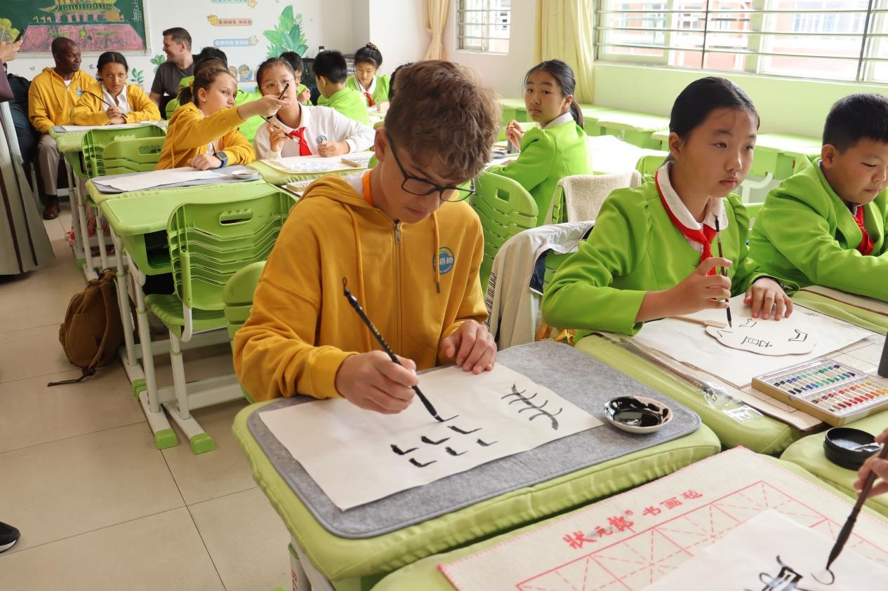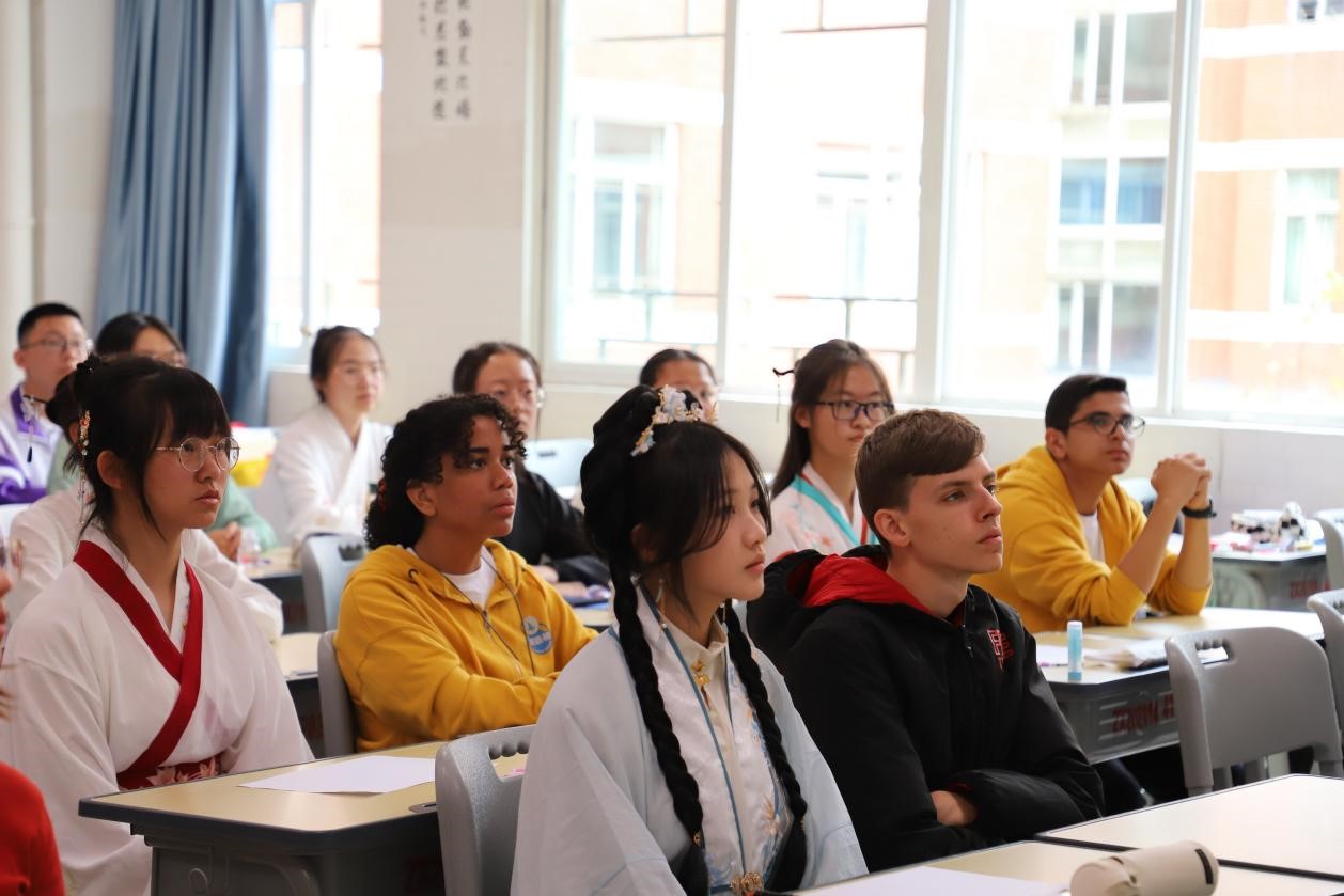 课间活动结束后,选手们分别走进中学、小学课堂,跟随中国学生体验剪纸、舞蹈、音乐、语文等课程。通过参加18节中学体验课和10节小学公开课,参赛选手们深刻地感受到了古诗、汉字、京剧、剪纸、音乐、舞蹈、雕刻、书法、茶艺、汉服等中华优秀传统文化的魅力。