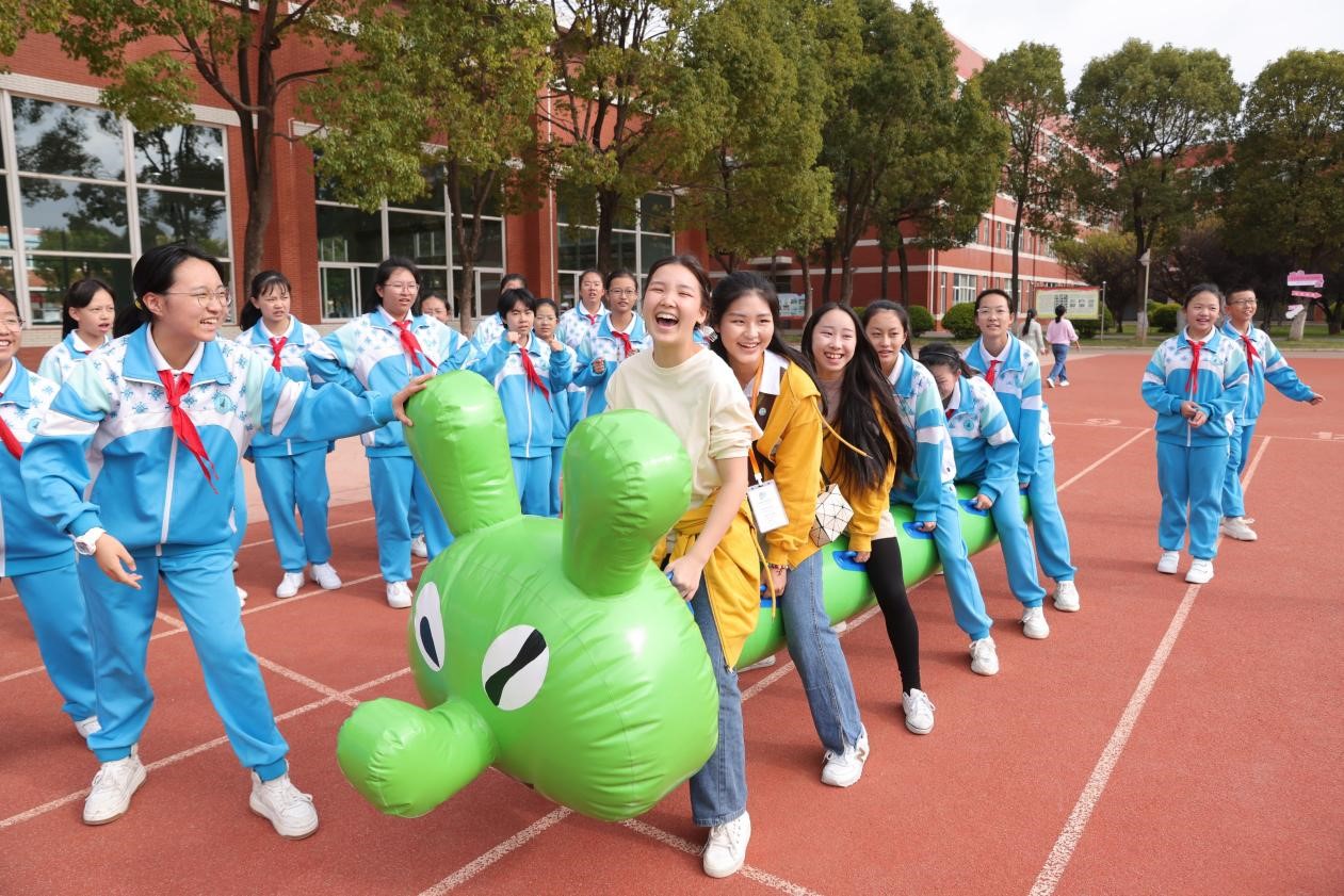 在课间操观摩体验环节,选手们观看了同学们带来的技巧“啦啦操”精彩表演,欣赏了中、小学生快乐舞步健身操。他们积极融入,乐在其中。