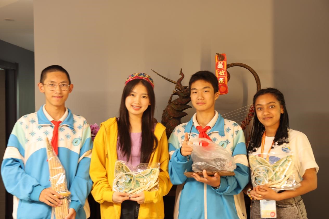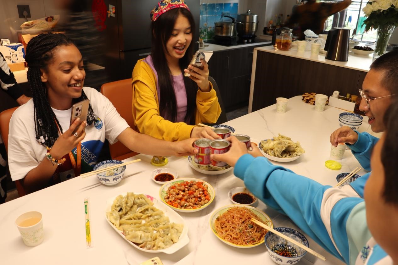 当天中午,选手们走入中国家庭,感受中国家庭文化。世纪金源学校初中同学陈冠中和好友朱晓航迎来的是来自老挝的周芳芳和来自厄立特里亚的孙琳。他们从刚开始的腼腆到主动,聊兴趣爱好,聊生活作息,再到文化学习。陈妈妈和陈奶奶为四位小朋友精心准备了面皮、饺子馅,并手把手教他们包饺子,一摊、一放、一蘸、一捏、一放,一个饱满有型的饺子呈现在手中时,喜悦写满脸上。周芳芳激动地说:“今天是我第一次包好一个饺子,不同的做法,有不同的味道,无论是蒸饺还是水饺,配上蘸水都非常美味。”