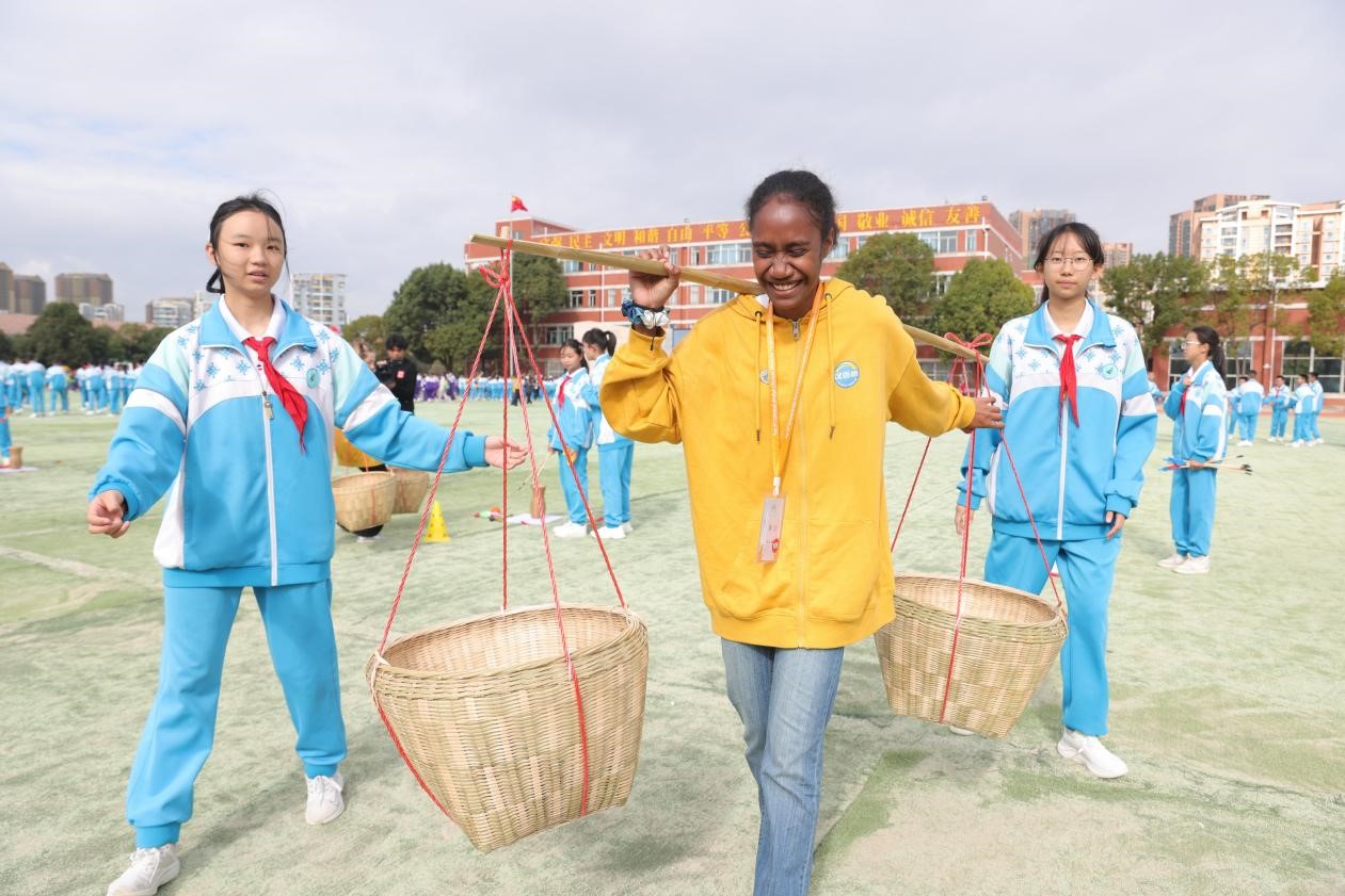 选手们还参加了跳长绳、功夫操、篮球、踢毽子等趣味体育活动,以及具有云南民族特色的左脚舞、滚铁环、扁担运粮、毛毛虫、投壶、簸箕颠球、方砖过河等民族游戏体验活动。选手及家长们都对这些课间体育活动和特色民族游戏充满了兴趣,玩得不亦乐乎。他们不断拍照留念,希望用相机留住精彩的瞬间。