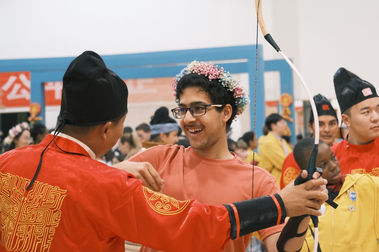 “我最喜欢的活动是射箭,在来中国之前也在自己的国家尝试过,刚刚在那边的射击活动中,6到8米远的距离射中了一次靶心,击响了悬挂的铜锣。”来自爱尔兰的毛爱杰高兴地说。“我刚刚尝试了,可能是我不是很会使用弓箭,导致手肘受了一点伤,但是没关系,我很享受刚刚射箭的那个过程,如果以后有机会我还想要再尝试一次。”来自斯洛文尼亚的潘佩兰说道。