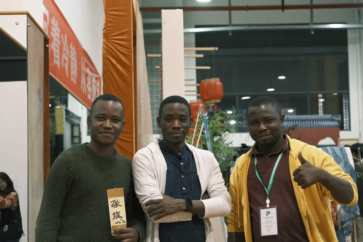 书法是中华优秀传统文化中的一个重要组成部分,扇子、书签、纸张、纸袋上都能供练习者挥毫,拿笔、蘸墨、落笔,写下汉字、绘上图画,不一会儿,一幅幅作品便跃然纸上,尽管手法生疏,但依然有很多漂亮的图画、工整的文字呈现在大家眼前。一位外国友人写下了“你好,中国”四个大字,足见他对来到中国以及感受中国文化的喜悦之情。