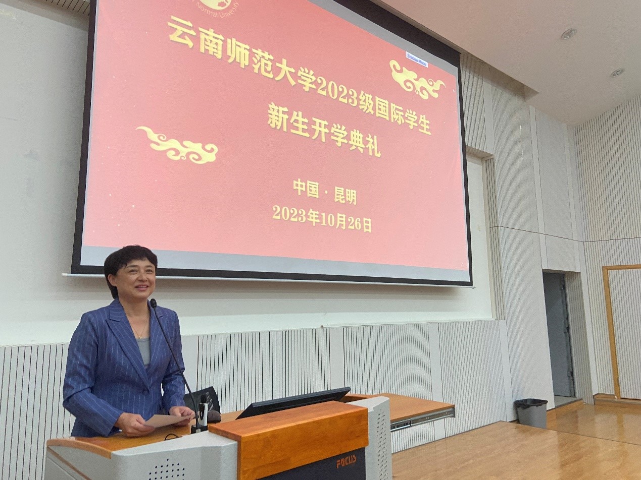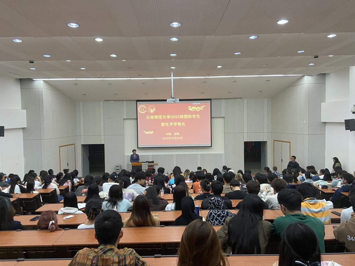 10月26日晚,必赢官网2023级国际学生新生开学典礼在同析楼报告厅举行,来自25个国家的277名国际学生新生、云南华文学院领导、国际学生班主任及国际学生管理各部门工作人员参加了典礼。典礼由云南华文学院党委书记和雪莲主持。
