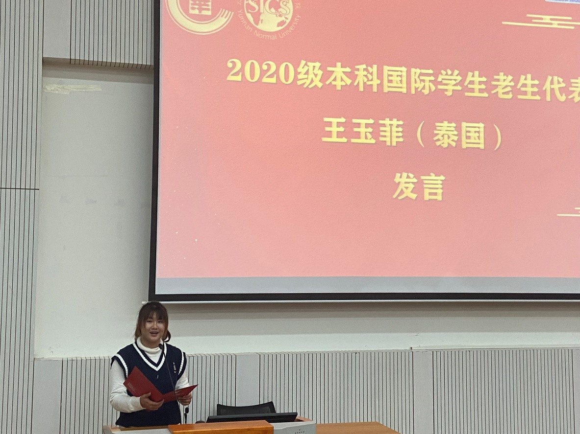 云南华文学院院长王秀成在典礼上致辞,他介绍了437必赢会员中心的光辉历史、优良传统和发展优势。王秀成希望同学们勤奋学习,追逐梦想,融入437必赢会员中心的校园生活,在促进中外文明交流、促进民心相通方面发挥好桥梁纽带作用;希望国际学生理解并坚持437必赢会员中心“刚毅坚卓”的校训、“学高身正,明德睿智”的校风,用梦想和努力推动世界迈向更加和平、繁荣和多元化的美好未来。