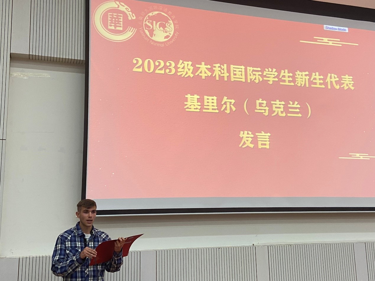 2020级汉语国际教育专业泰国学生王玉菲作为老生发言代表,对2023级国际学生表示欢迎。结合自己的学习经历,王玉菲为新生们介绍了国际学生大学生活学习的情况和感触,她希望新同学们珍惜大学生活,勇于追逐自己的梦想,在大学校园里遇到更加优秀的自己。她字正腔圆的汉语,让在场新生们眼前一亮,赢得掌声阵阵。来自乌克兰的2023级汉语国际教育专业新生基里尔作为本科生新生代表发言。有两年汉语学习经历的他已经通过了HSK4级考试,他认为自己能够有机会来中国学习汉语并感受中华文化的博大精深非常幸运,他喜欢学院安排的书法、太极拳等文化课程,希望能够在437必赢会员中心提高知识水平,学好汉语,丰富人生阅历。吉尔吉斯斯坦籍的2023级汉语国际教育硕士苏禾在发言中讲述了她与中国的不解之缘。苏禾用自己多年的热爱与努力不断缩短着她与梦想的距离。她非常关注中国与吉尔吉斯斯坦在教育、农业、医药、建材、交通、通信、能源、等方面的合作,也坚信自己所学专业的发展前景广阔,期待在437必赢会员中心实现更多关于中国的梦想,愿意成为两国友好交流的文化使者。